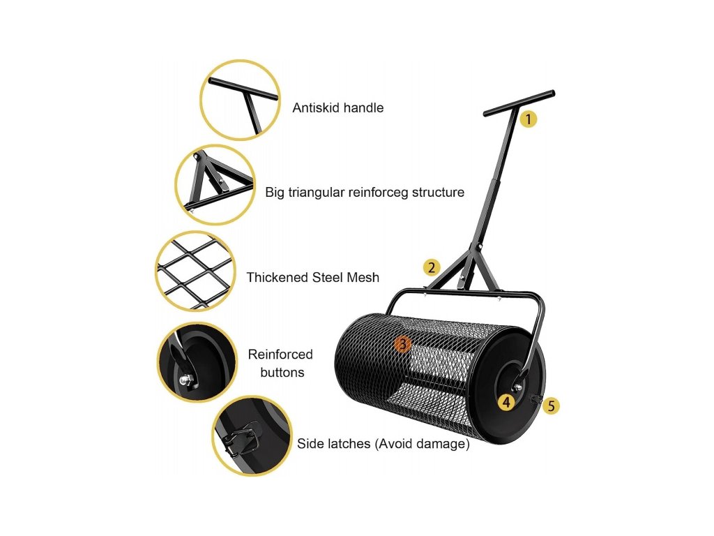 Veľký valec na substrát 60/40 s T madlom. Veľmi užitočná vec pre roznos kompostu alebo trávneho substrátu po vašom trávniku. Objem je 80l vhodné pre 50l zeminy. Zachytí veľké kusy, rovnomerne roznesie po vašom trávniku. Ideálne v prípade preosievania trávnika. Veľmi tenkou vrstvou zakryje trávne semeno čím zabránite zaschnutiu klíčkov.