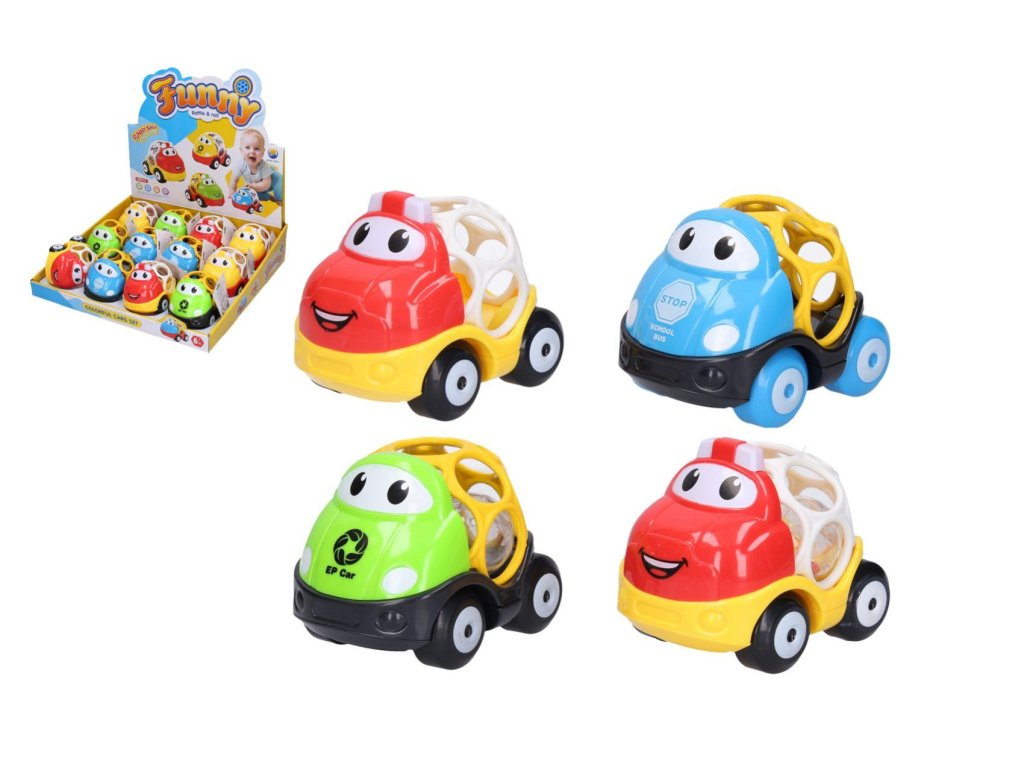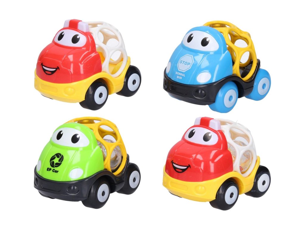 Autíčko s hrkálkou plast 9,5 cm 4 farby