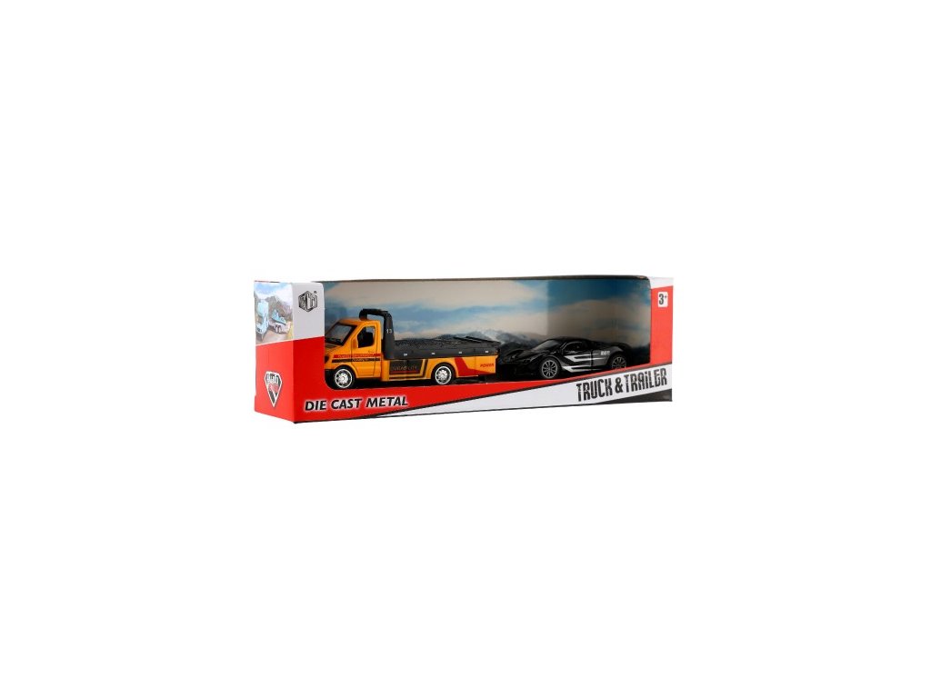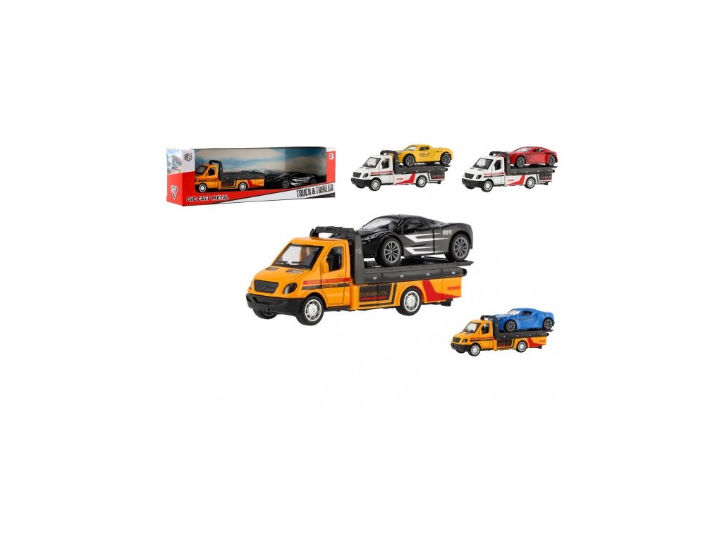 Auto odťahovka + auto kov/plast 11cm na spätné natiahnutie mix druhov v krabičke 24x7,5x6cm