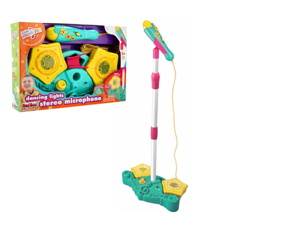 Mikrofón karaoke plast na batérie so svetlom so zvukom v krabici 38x26x8cm
