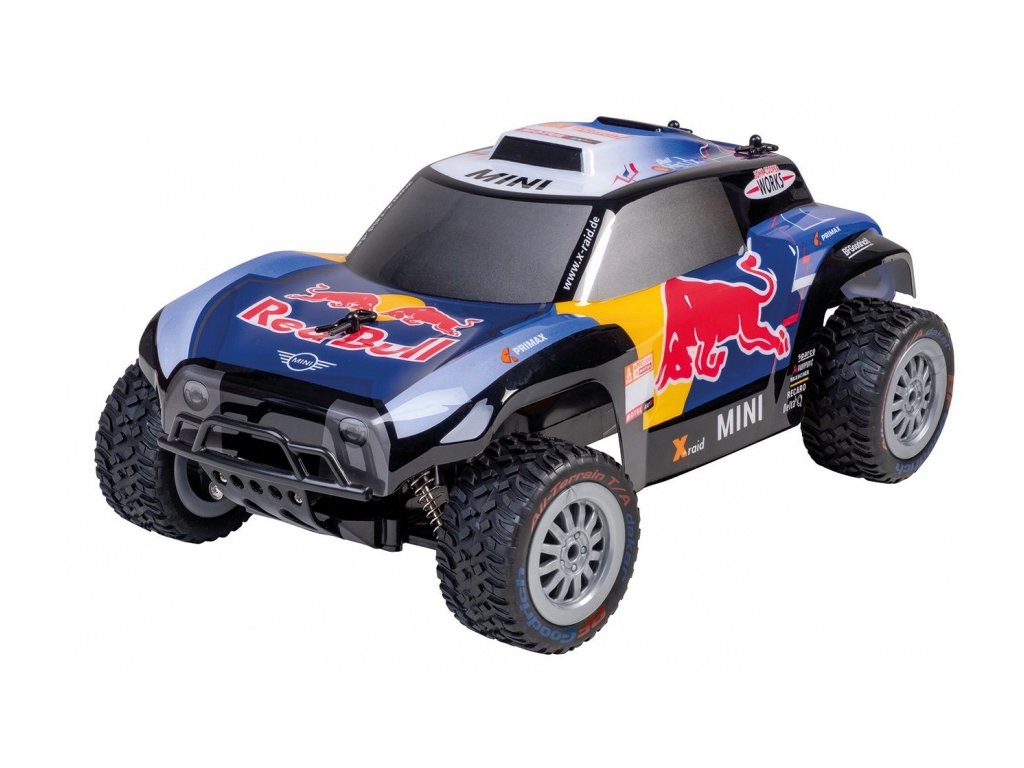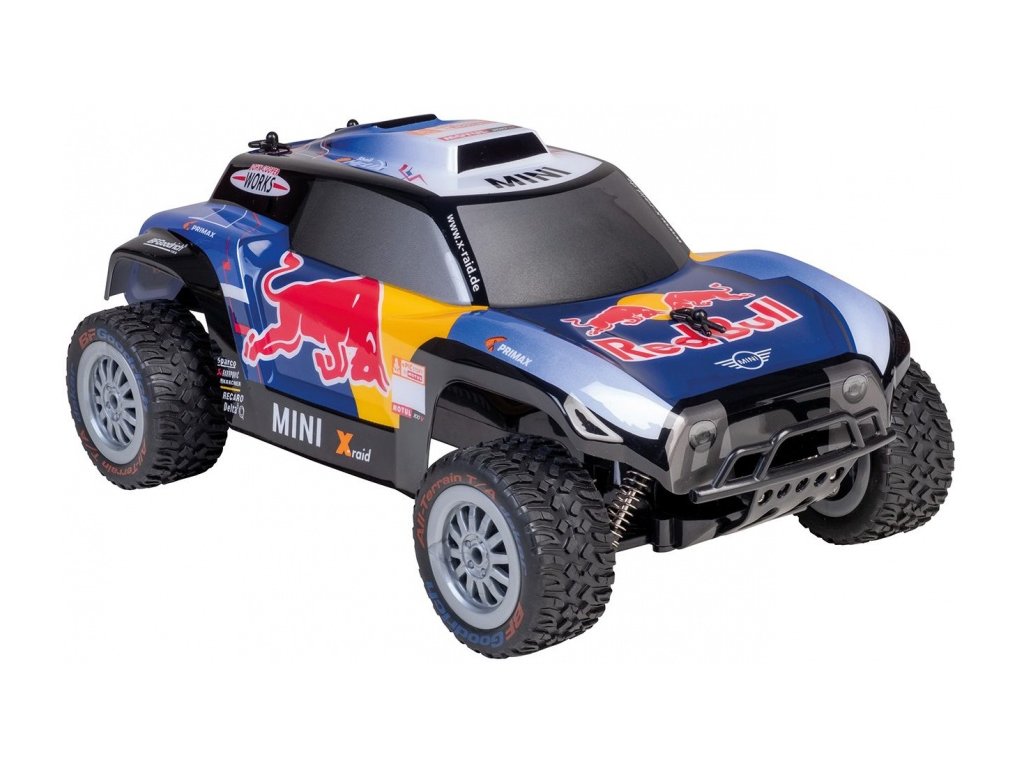 Ideálna voľba pre Vašich najmenších pretekárov má meno X-raid MINI JCW Buggy Red Bull. Hlavnou prednosťou tohto modelu je licencia nielen od MINI BMW AG, ale tiež od Red Bullu. Vďaka tomu má auto presne rovnaký dizajn ako jeho slávny vzor, ktorý pretekajú na preslávenom Rallye Dakar. Model má pohon prednej nápravy, teda 2WD a dokáže vyvinúť rýchlosť až 10 km / h. Vďaka odpruženie všetkých kolies sa nemusíte báť ani terénu v ktorom sa X-raid MINI JCW cíti ako ryba vo vode. Veľmi kvalitné spracovanie podtrhuje karosérie z takmer nezničiteľného Lexanu s detailné maľbou. Ovládač pracuje na dnes už štandardných 2.4 GHz, kedy je možné, aby jazdilo až 10 jazdcov naraz bez vzájomného rušenia. Urobte svojim ratolestiam radosť a zažite s nimi nefalšovanú atmosféru Rallye Dakar.