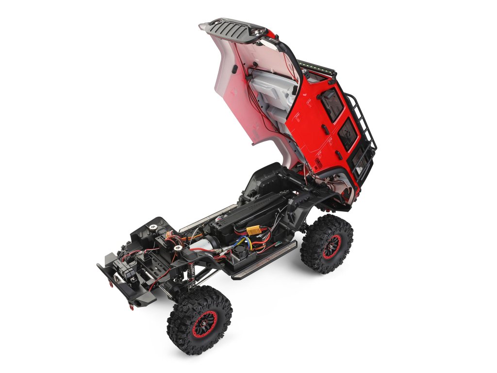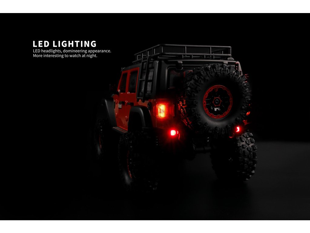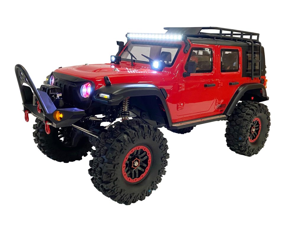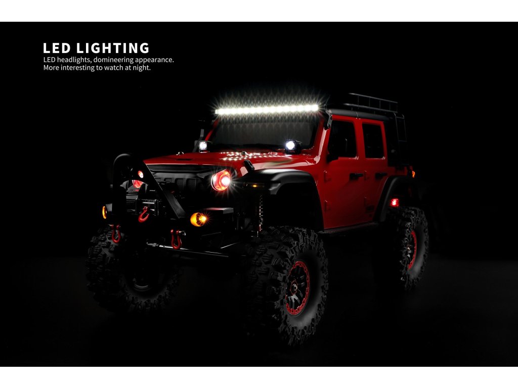 CRAWLER A RÝCHLOSTÉ AUTO V JEDNOM VĎAKA DVOJRÝCHLOSTNEJ PREVODOVKE OVLÁDANEJ Z VYSIELAČA * VYNIKAJÚCE PORTÁLOVÉ NÁPRAVY PRE MAXIMÁLNU PRIECHODNOSŤ TERÉNOM * DIAĽKOVO UZAVIERATEĽOV NIE V ŠTÝLE JEEP WRANGLER RUBICON