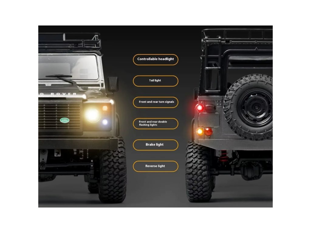 Prepracovaná karoséria je designovaná s presnosťou na každý detail. Súčasťou balenia sú aj všetky doplnky karosérie, ako sú stierače, kľučky atď. Strieborná verzia Land Rover D90 má plne funkčné LED osvetlenie. Fungujú stretávacie, obrysové, smerové aj brzdové svetlá. Pri verzii V2.1. je možné zapnúť aj varovné svetlá podržaním tlačidla pre vypnutie osvetlenia. Tento model máme v ponuke aj vo verzii Camel Trophy, kde k osvetleniu pribudla ešte svetelná rampa na streche.