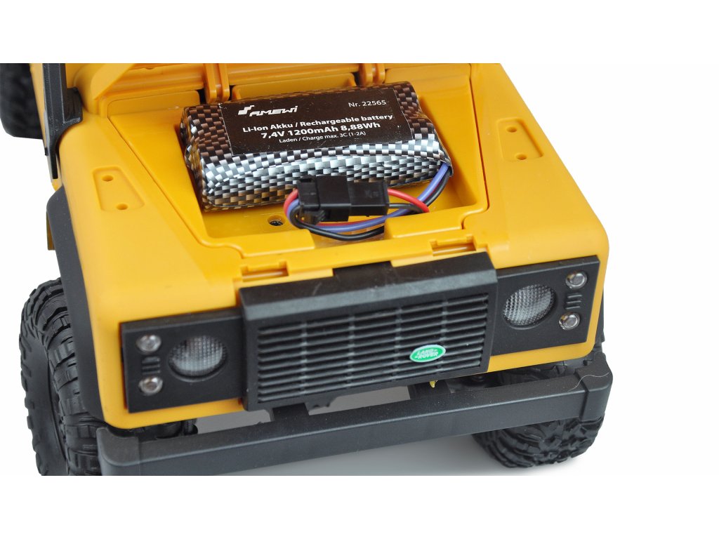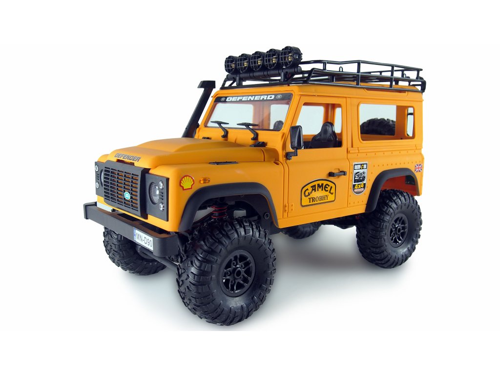 D90 Rock Crawler v podobe legendárneho Land Roveru Defender, 1:12, 4WD, LED svetlá a blinkre, 2,4 GHz, ochrana proti striekajúcej vode, plne proporcionálna, 100% RTR, CAMEL TROPHY