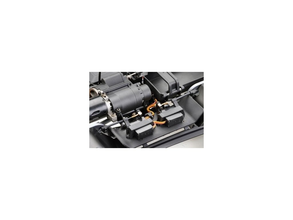Model je poháňaný technológiou od firmy HOBBYWING - zahŕňa vodotesný regulátor rýchlosti 60A (typ 1060) a elektromotor radu 550. Hliníkový držiak motora pomáha odvodu tepla z motora a zároveň zaisťuje bezpečné a presné uchytenie motora. Nastaviteľná klzná spojka poskytuje dodatočnú ochranu v extrémnych podmienkach ako motora, tak aj prevodov. V modeli je nainštalované 9kg digitálne servo riadenia s kovovými prevodmi a 3x mini servo s ťahom 0,9 kg na ovládanie prevodovky a uzávierok diferenciálov. Všetky servá sú vodotesné. Olejový tlmič riadenia jednak chráni servo pred nárazmi a tým mu výrazne predlžuje životnosť a jednak znižuje nároky na jeho výkon/ťah.