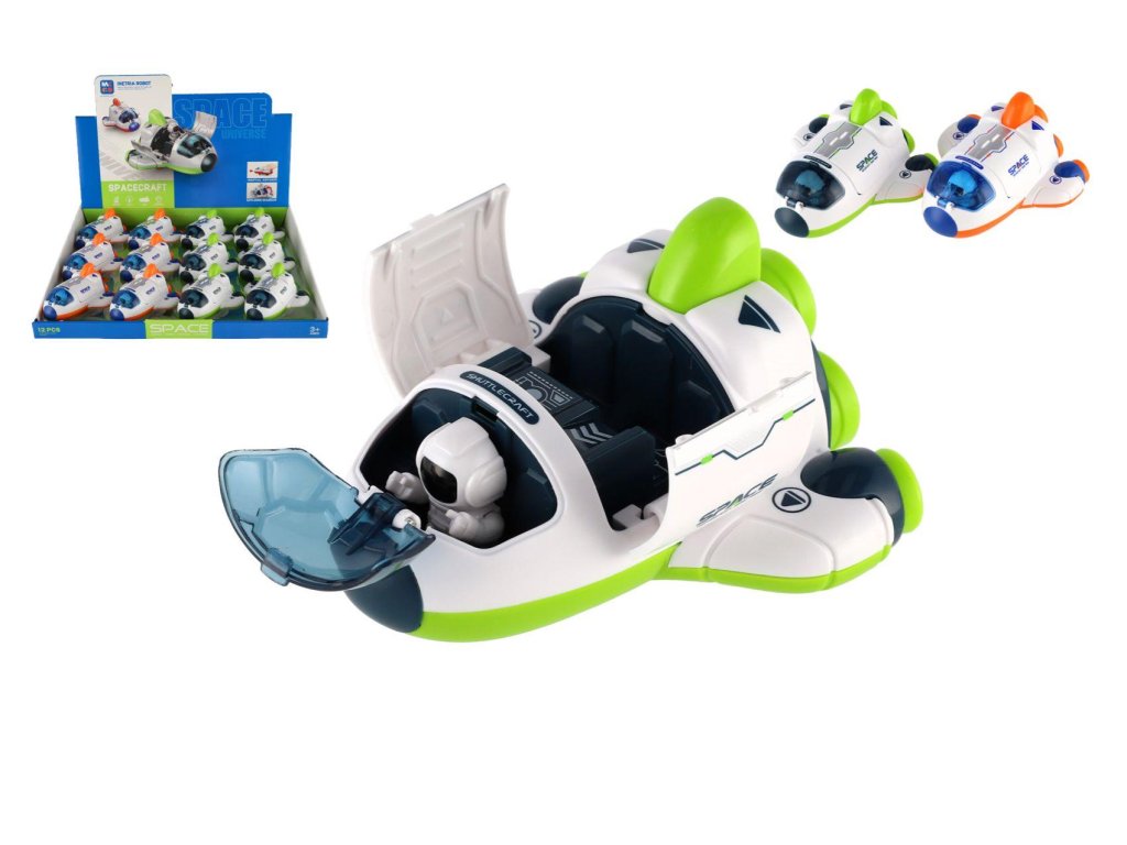 Raketoplán/raketa plast 10x11cm s kozmonautom na zotrvačník 2 farby