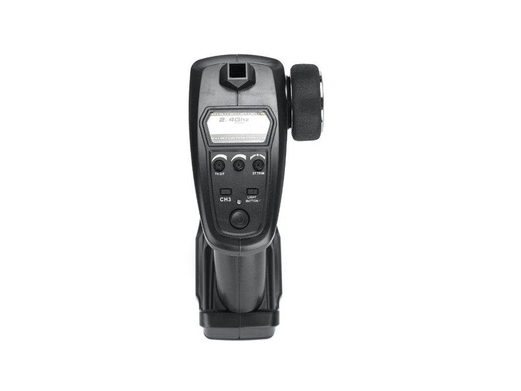 Vďaka pištoľovému ovládaniu na frekvencii 2,4 Ghz vás neobmedzí ani dosah, ani rušenie s ostatnými pretekármi. Potrebujete doň 3 x AA batérie.