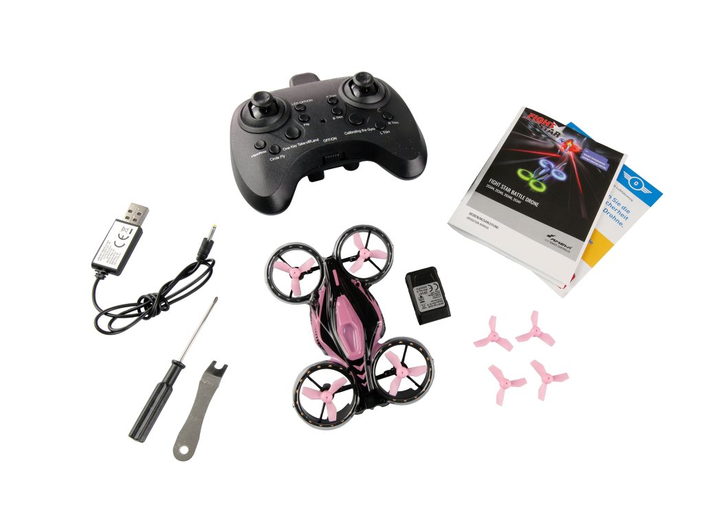 RC dron FightStar - bojový dron, funkcia 2 v 1, funkcia infračervenej bitky, automatický vzlet aj pristátie, udržiavanie výšky, preklopenie o 360 °, vypínateľné LED osvetlenie, RTF, vhodný aj pre začiatočníkov, farba ružová.