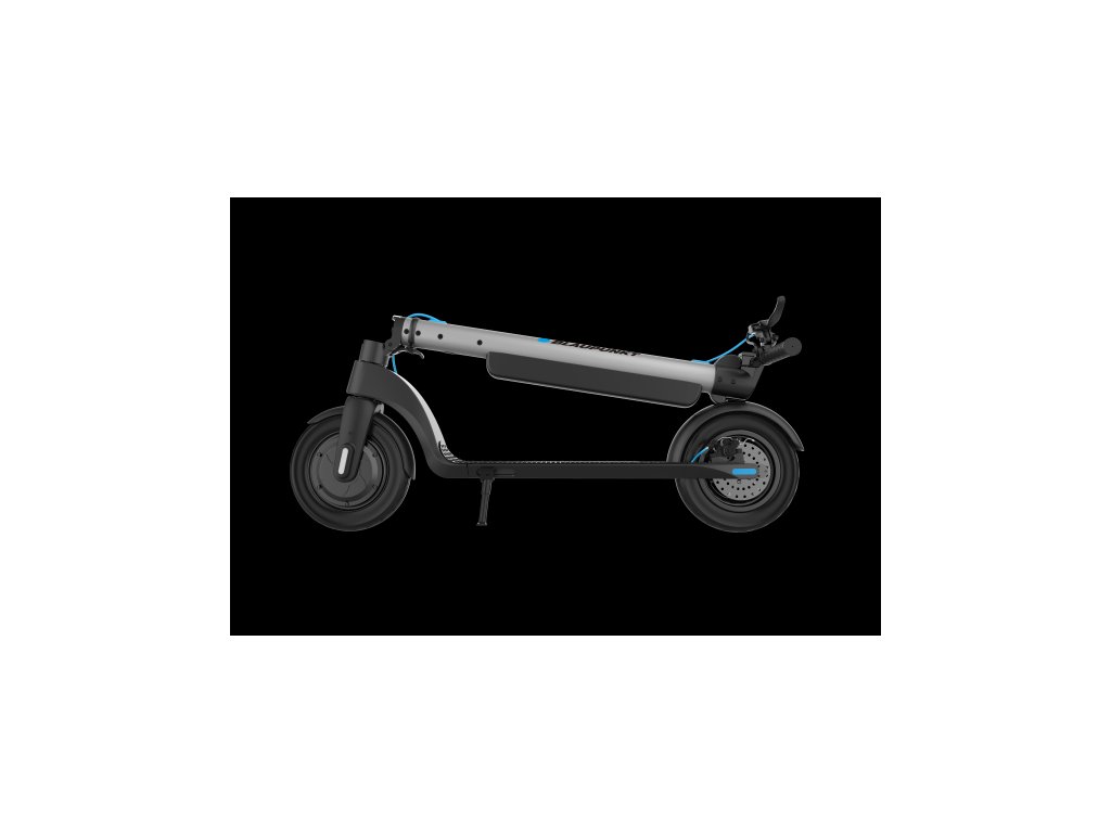 Model ESC 910 je vybaven nafukovacími 10°koly a s protiskluzovou plošinou není problém náročnější terén, jako je prašná cesta, dlažební kostky atd. Díky vyšší světlé výšce také snadno zvládá přejezdy na obrubnících. Má také velmi citlivou zadní kotoučovou brzdou a nožní brzdu s předním systémem E-ABS a při akutním zabrždení vám automaticky bliká zadní světlo. To z ní dělá vhodou elektrokoloběžku do města a i rušnějších částí. Je skládací, takže není problém si ji vzít s sebou do metra, tramvaje či na nějakou schůzku.