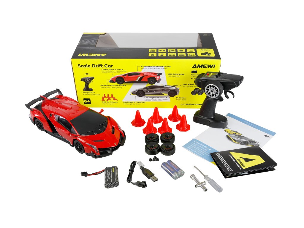 RC Drift Car Lamborghini Veneno 4WD LED 1:18 RTR licencované červené