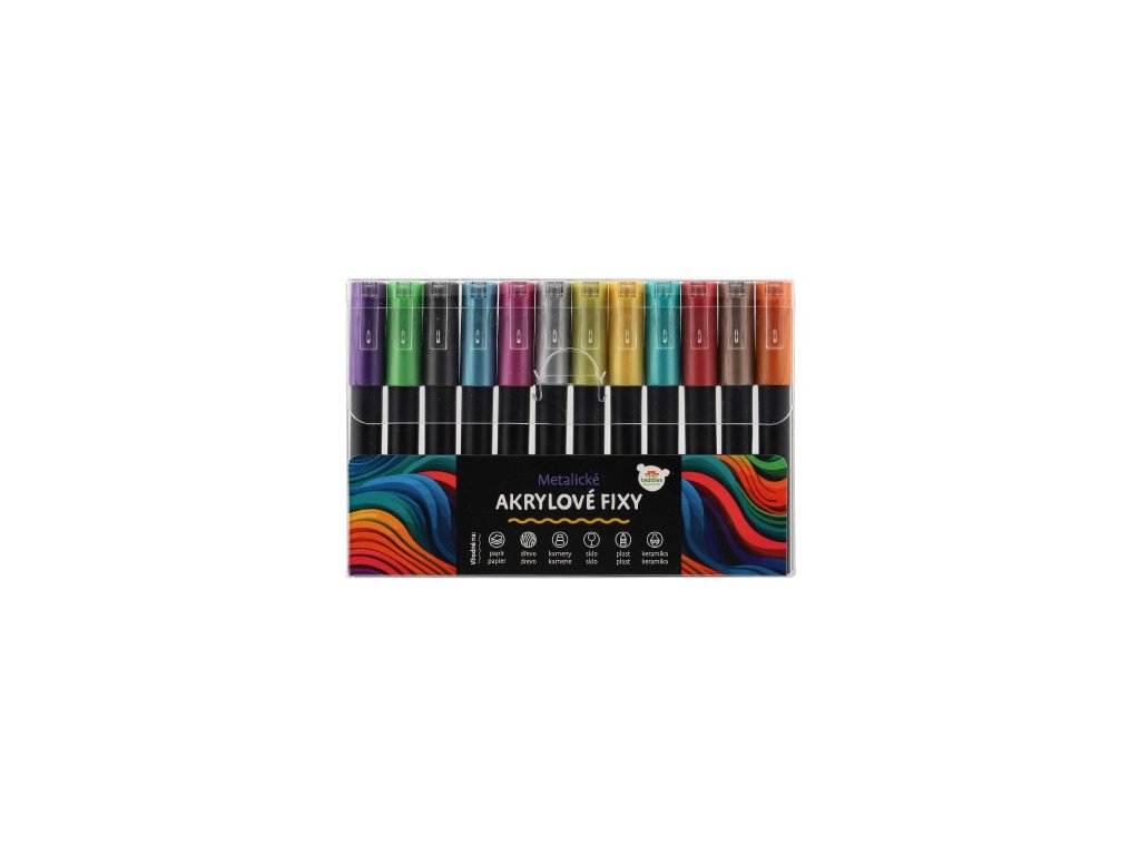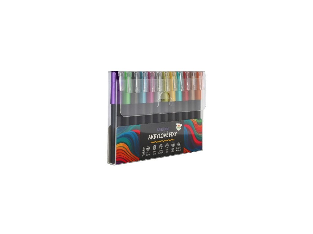 Fixy akrylové metalické 12ks i na keramiku, sklo, kamene, hrot 4mm