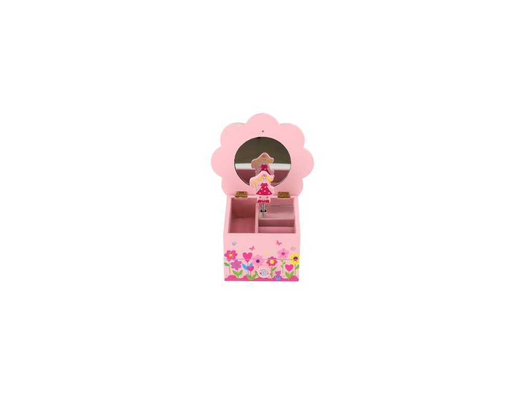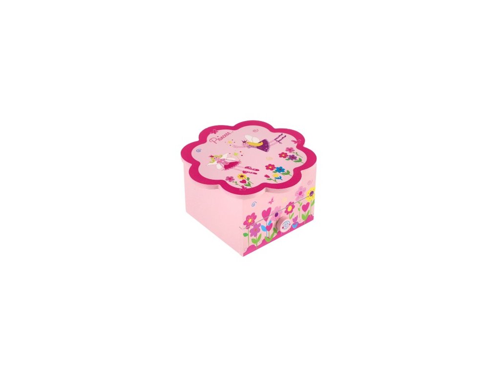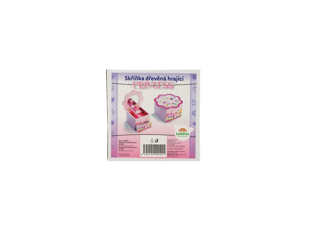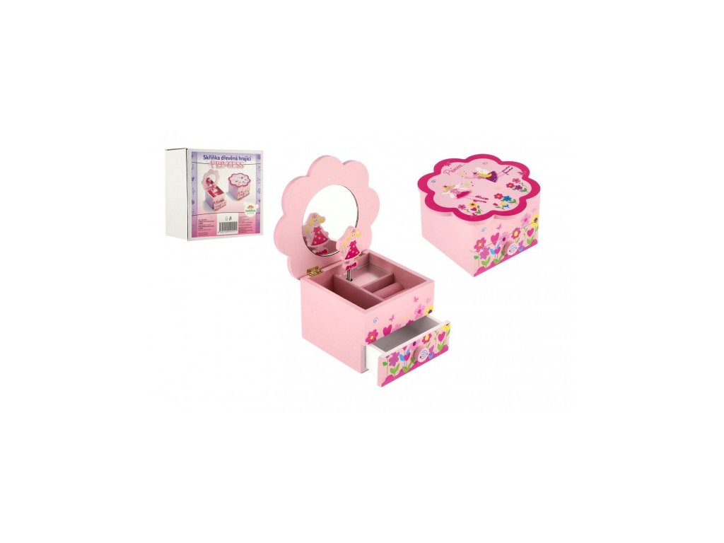 Skrinka šperkovnica Princess drevo hrajúci kvetina zásuvka 14,5x8x14,5cm