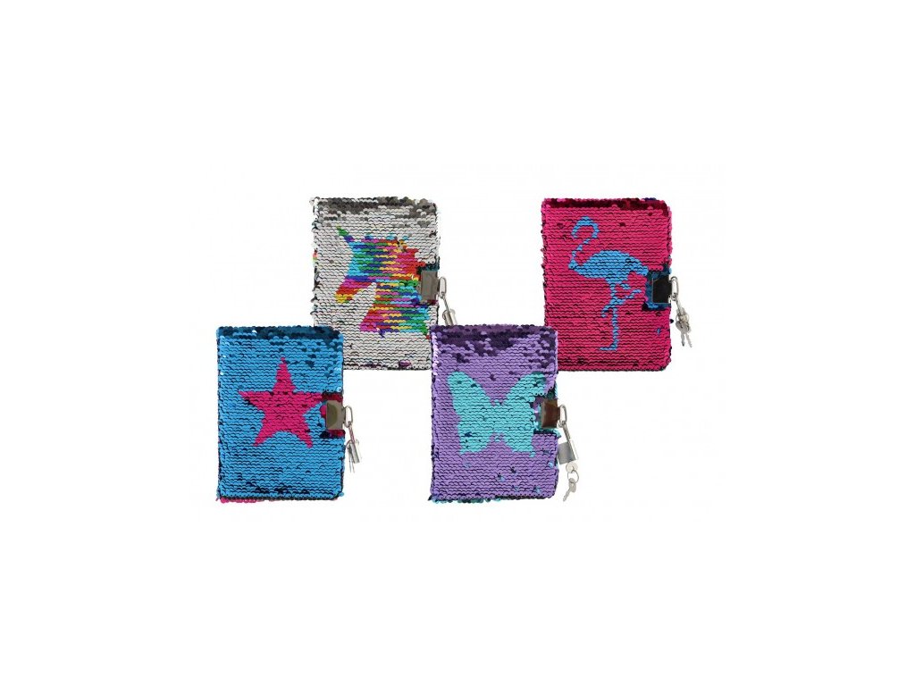 Poznámkový blok s flitrami meniacimi sa zámkom mix druhov v sáčku 11x15x2cm