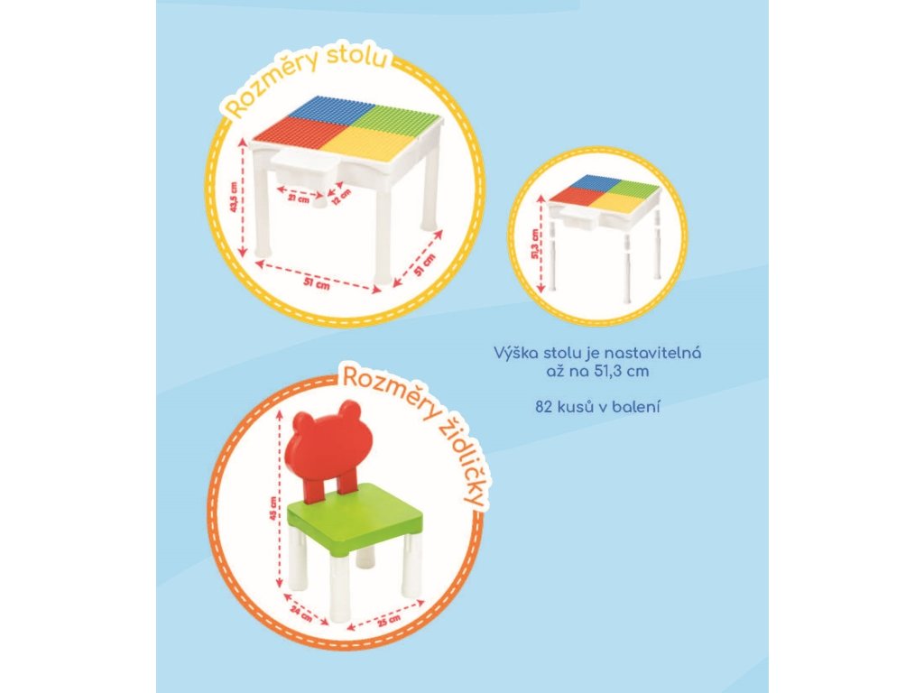 Rastie s dieťaťom: Vďaka nastaviteľným nožičkám je možné stôl zdvihnúť až na 51,3 cm, čo znamená, že set bude rásť s vašim dieťaťom a prispôsobí sa jeho potrebám.