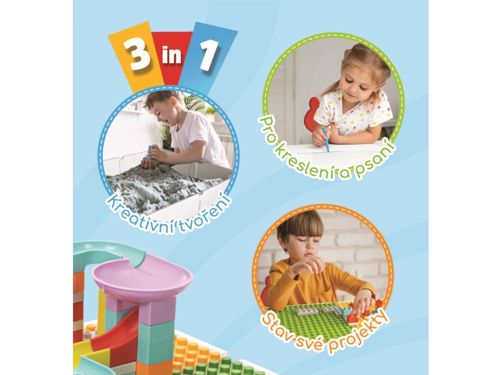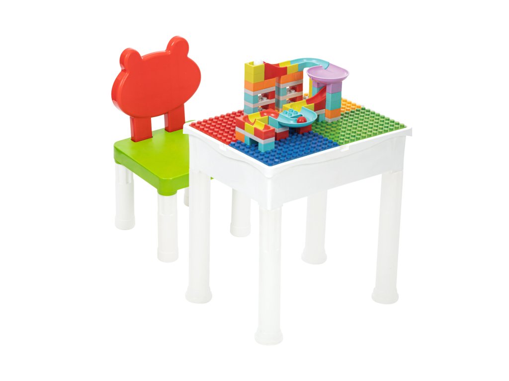 Obojstranný stôl: Jedna strana na kreatívne stavanie s kockami, druhá na kreslenie a maľovanie. Či už sa vaše dieťa cíti ako malý architekt alebo umelec, tento stôl mu poskytne priestor pre oboje.