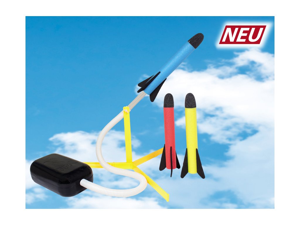 Sada 3 pěnových raket AIR ROCKET 2 je vyrobena z NEROZBITNÉHO POLYPROPYLENU. Raketu jednoduše nasadíte na odpalovací rampu, která je součástí balení, a pak razantním došlápnutím na vzduchový měch raketu jednoduše odpálíte. VYROBENO V NĚMECKU. Raketa AIR ROCKET 2 je vhodná pro venkovní prostory.