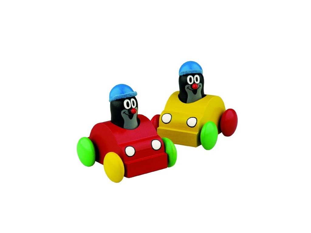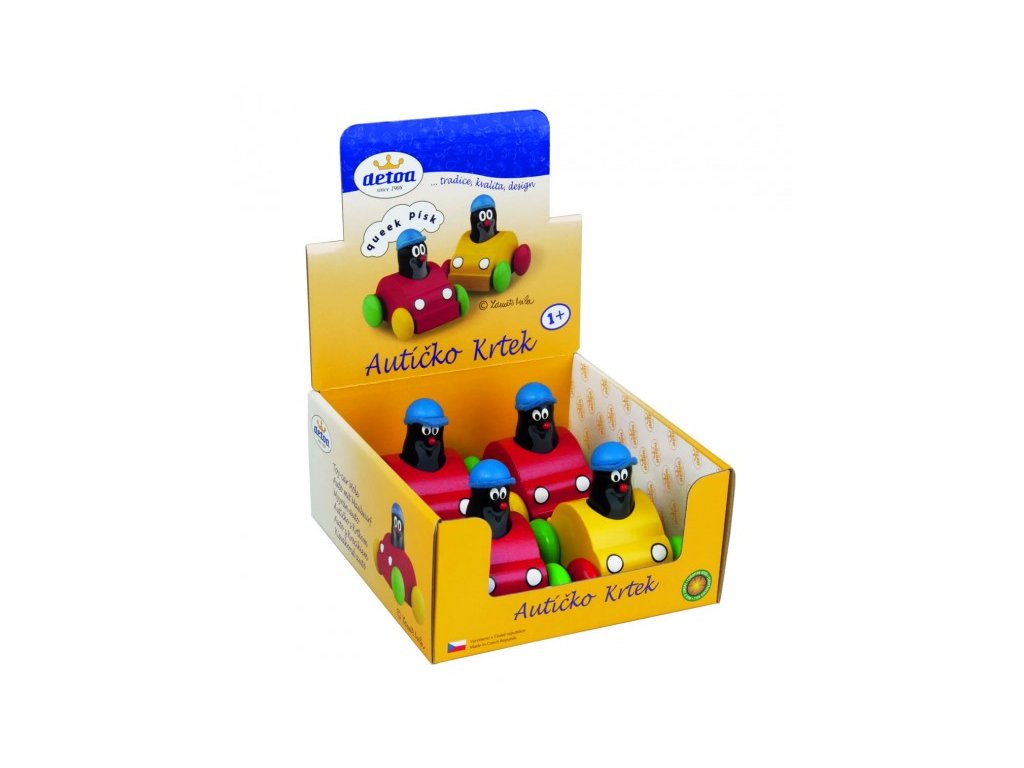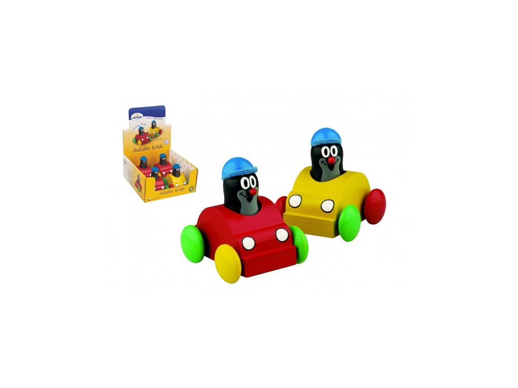 Pískajúce krtek v autíčku drevo 7cm 2 farby od 12 mesiacov