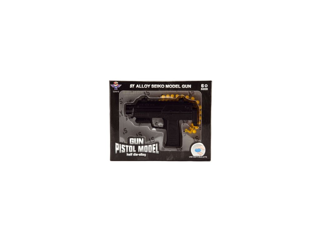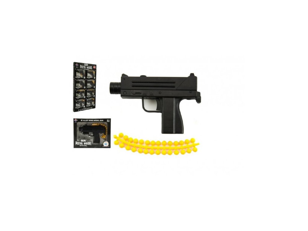 Pištoľ kov / plast 11cm na guličky mix druhov v krabičke 15x12cm
