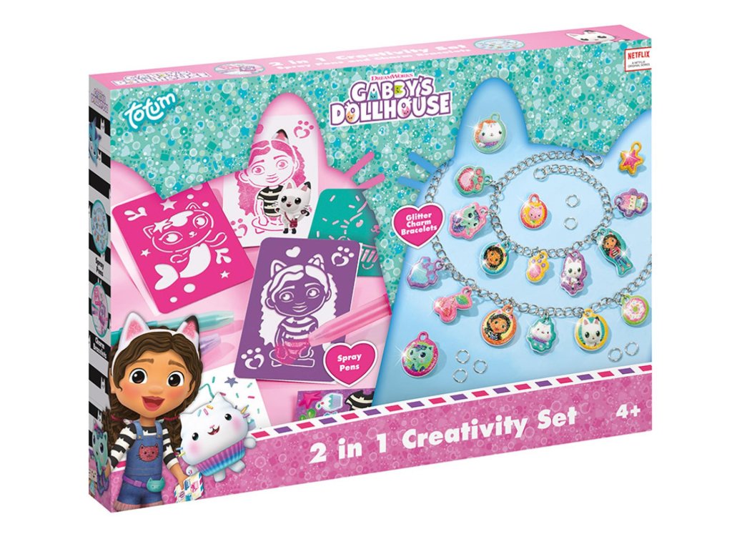 Kreatívna sada 2v1 fúkacie fixky + výroba náramkov s príveskami Gabby/ Gabby's dollhouse v krabičke