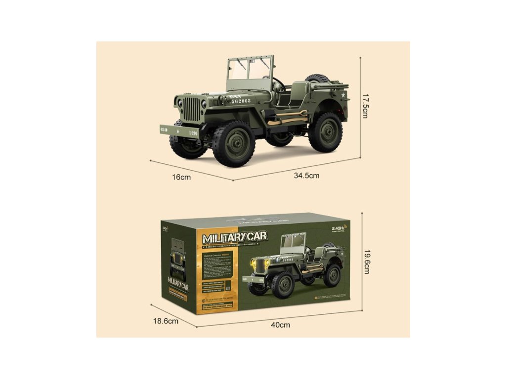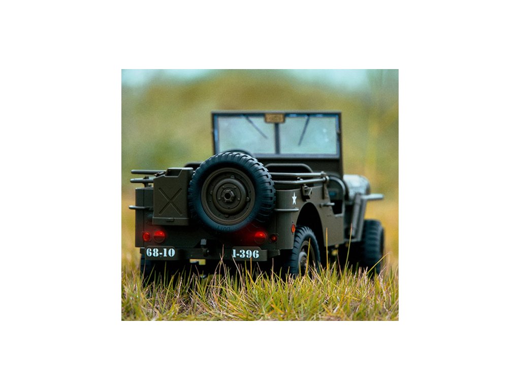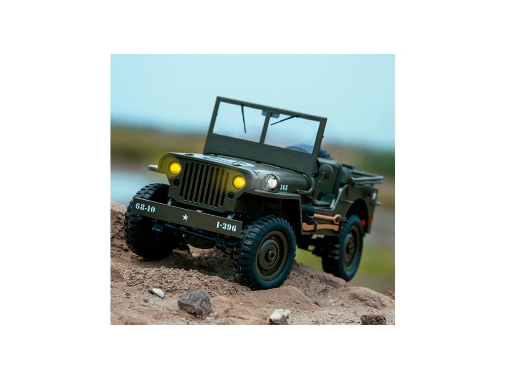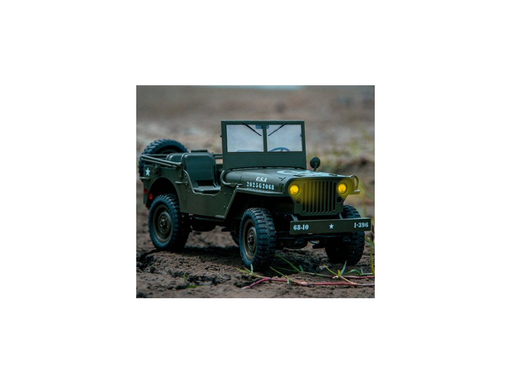 RC model Jeep Willys je replika známeho pechotného vozidla, ktorý bol vyrobený v roku 1940. Bol využívaný ako komunikačné, prieskumné alebo veliteľské vozidlo. Používalo sa hlavne na prepravu ľahkých zbraní, malo 3 x lepšiu prejazdnosť ako vozidlá vtedajšej doby. Prepracovaný dizajn, nádherné spracovanie a perfektné jazdné vlastnosti vás milo prekvapia.