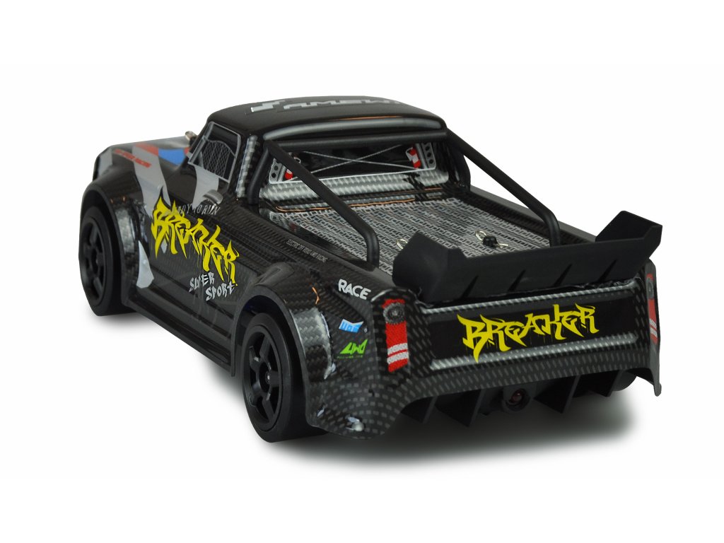 Sport Car Breaker kombinuje skvelý vzhľad, sofistikovanú technológiu spojenú s vysoko účinným gyroskopom a dostatočným výkonom pre elegantné drifty. Či už na ulici, na trati alebo na podlahe v obývačke – tento model v mierke 1:16 zvládne akýkoľvek terén. Citlivé diaľkové ovládanie 2,4 GHz poskytuje veľmi priamy zážitok z jazdy. Rýchle a výkonné servo riadenie taktiež zaisťuje presné ovládanie a výkonný pohon 4WD v spojení s veľkou batériou (7,4 V Li-Ion 1200mAh) umožňuje dlhé doby jazdy pri maximálnej rýchlosti cca 30 - 35 km/h. Integrovaný gyroskop podporuje model v každej polohe a udržuje Drift Sport Car Breaker vo svojom jazdnom pruhu. Ako malý doplnok bol tento model vybavený rôznymi možnosťami osvetlenia, ktoré sú nastaviteľné pomocou vysielača. Je možné zvoliť tri rôzne TYPY LED osvetlenia a predná časť získava iný pôsobivý vzhľad. Model bol už vybavený dobrými guličkovými ložiskami, kovovými CVD hnacími hriadeľmi a presným podvozkom. Ako bonus sú do dodávky zahrnuté aj cestné pneumatiky. Tie je možné jednoducho nainštalovať namiesto namontovaných unášaných pneumatík.
