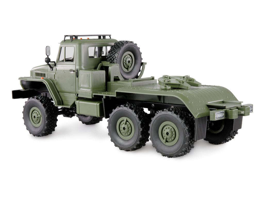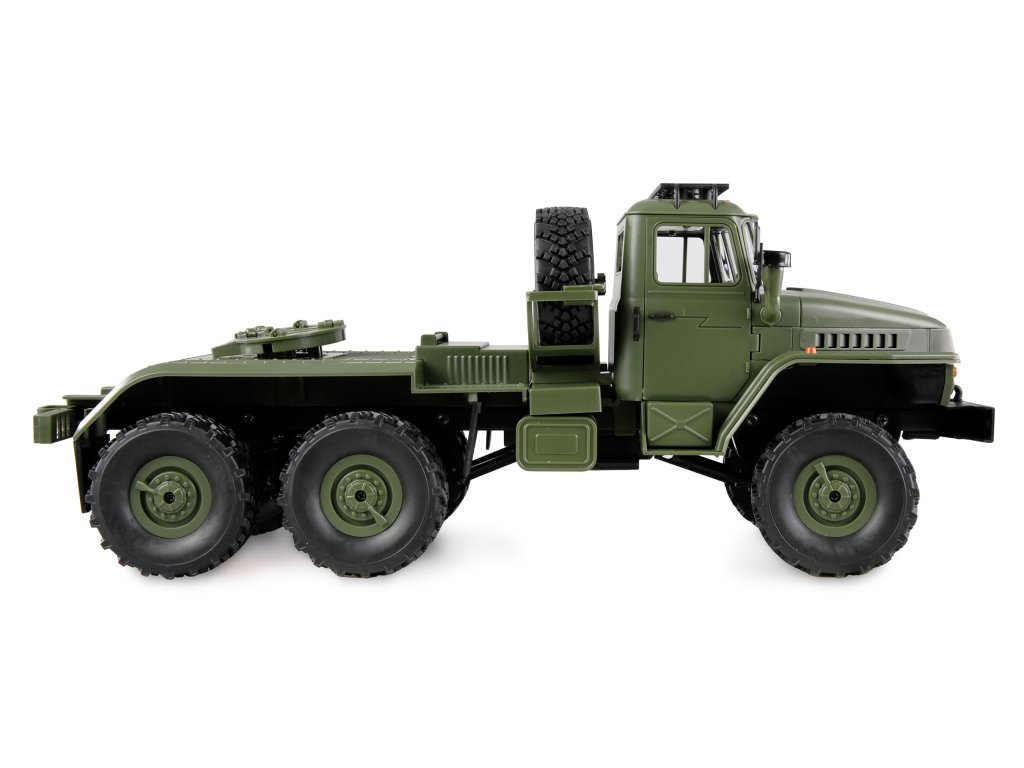Vojenský nákladný automobil URAL B36, pohon 6WD, mierka 1:16, RTR, LED osvetlenie, elektronická ochrana proti prevráteniu, gumové pneumatiky, ochrana proti striekajúcej vode, vhodné pre začiatočníkov.