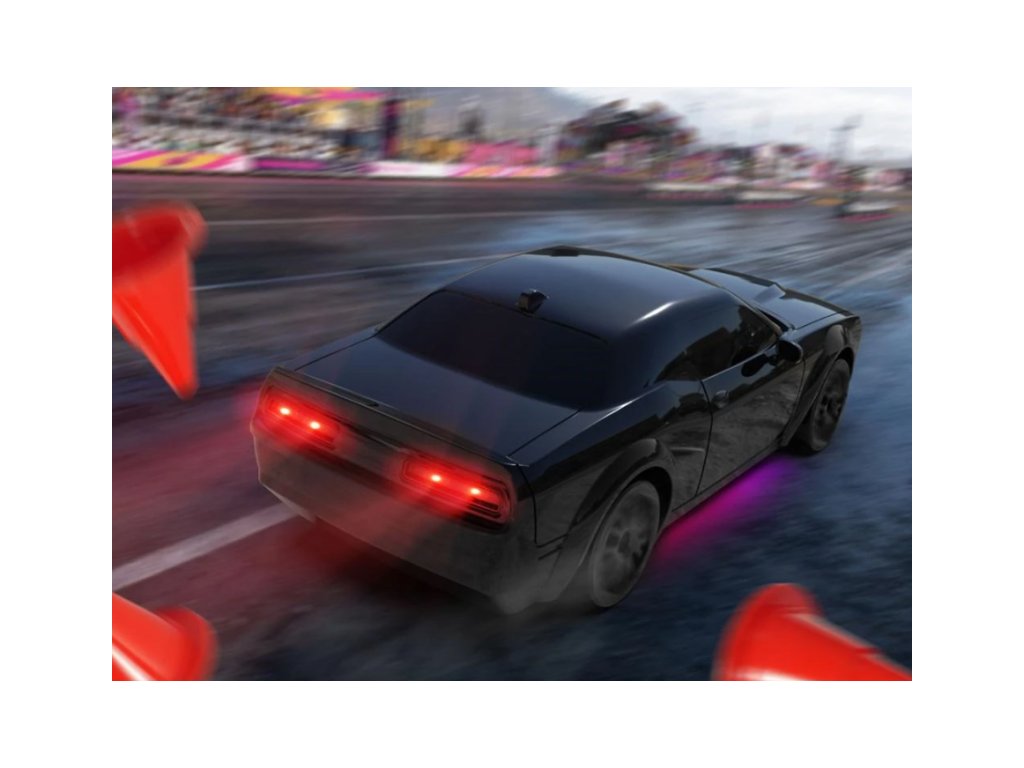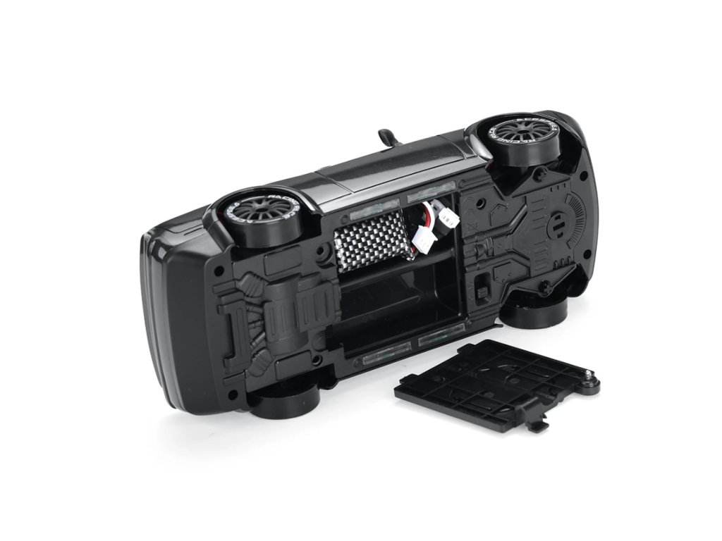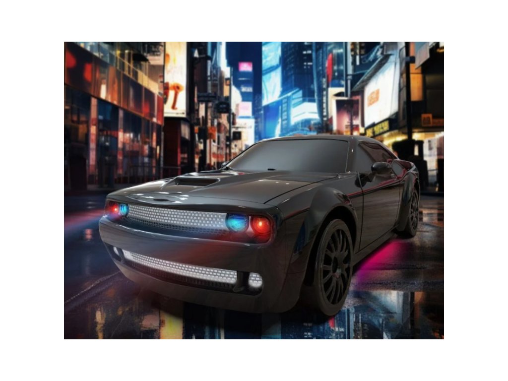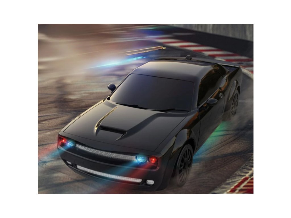 Hladké línie vozidla môžete zdôrazniť zlatými samolepkami, ktoré sú súčasťou balenia. Predné aj zadné svetlá spolu s podsvietením podvozku vás vtiahnu do sveta pretekov, obzvlášť za znížených svetelných podmienok. Pomocou tlačidla na diaľkovom ovládači môžete prepínať medzi 3 farbami a 7 režimami podsvietenia. Krátkym stlačením je možné podsvietenie vypnúť či zapnúť. Je vyrobený z odolného, kvalitného plastu, takže bez problémov odolá začiatočníckym kolíziám. Oceňujeme gumové zrkadlá...