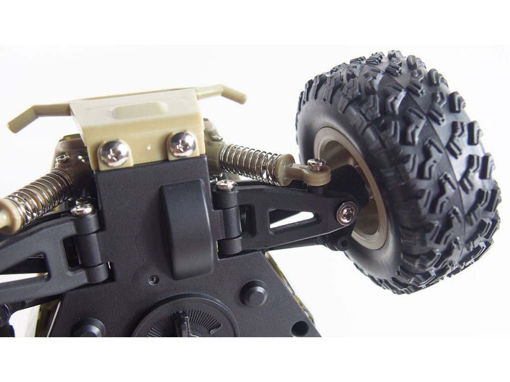 Maximální dosažitelná rychlost je asi 20 km / h. Ovládání přes 2,4 GHz vysílač. Model má pohon 4x4. Navíc je odolný proti stříkající vodě, a proto je vhodný pro venkovní použití do téměř jakéhokoliv terénu. RTR balení. Díky jednoduchému ovládání je vhodné pro začátečníky.