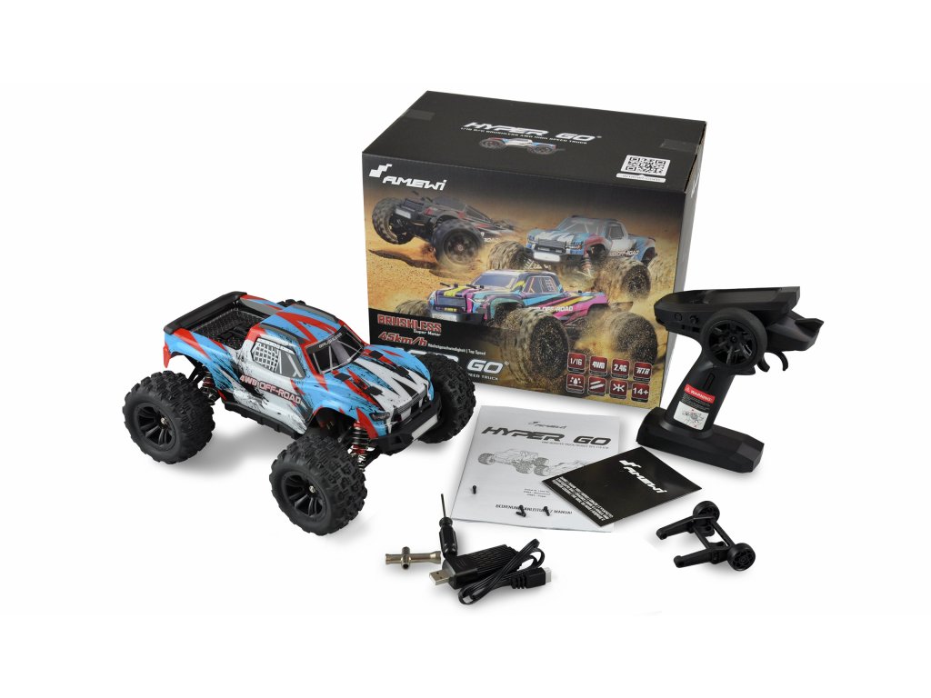 AMEWI Hyper Go Monster Truck 4WD 1:16 RTR brushless, LED osvetlenie, modrobiely