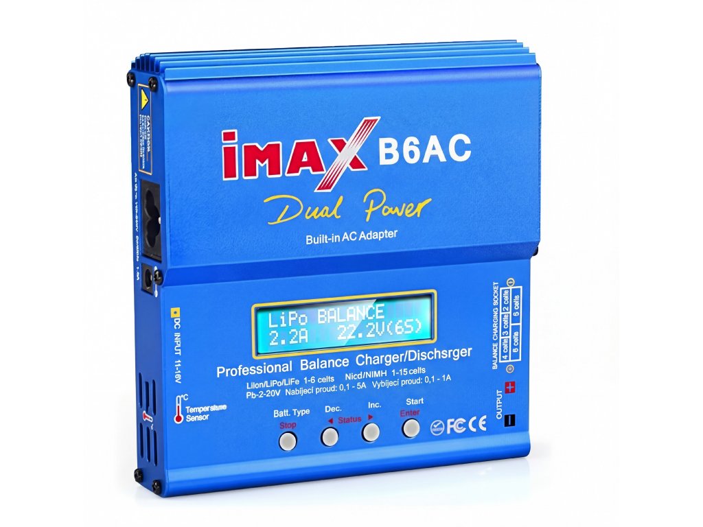 IMAX B6AC je univerzál - zvládne všetky bežné typy článkov a chémie. Stačí nastaviť typ a počet článkov, zvyšok zvládne sám.