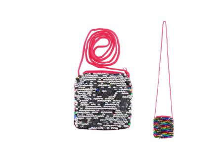 Kabelka s farebnými flitrami meniacimi látková ružová 11x12cm