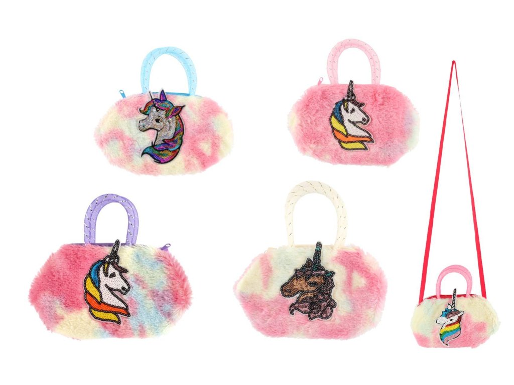 Peňaženka/Kabelka jednorožec látková/plyš 6 farieb 18x20x2cm