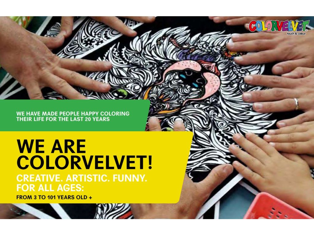 Značka COLORVELVET je unikátny taliansky výrobca, ktorý prináša do sveta detského umenia revolučnú metódu. Ich produkty nie sú len obyčajné omaľovánky, ale plátna potiahnuté špeciálnym čiernym zamatom, ktorý deťom uľahčuje vyfarbovanie a zabraňuje prenikaniu farieb cez obrysy.