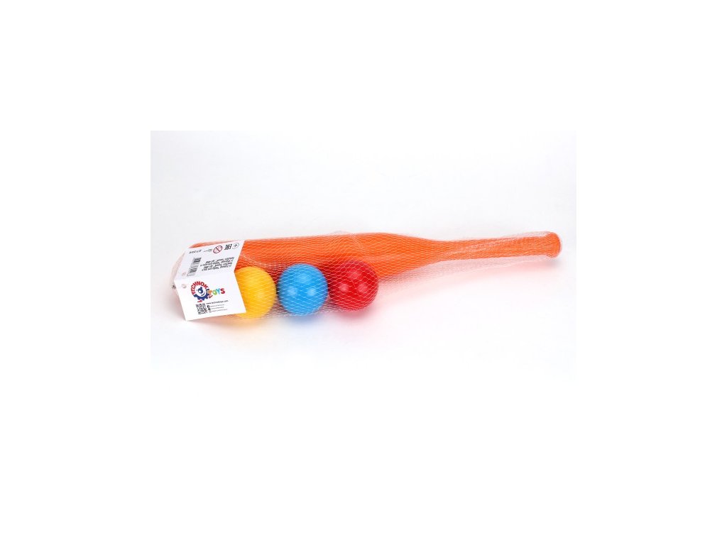 Baseballová pálka 50cm + loptičky 3ks plast 2 farby v sieťke