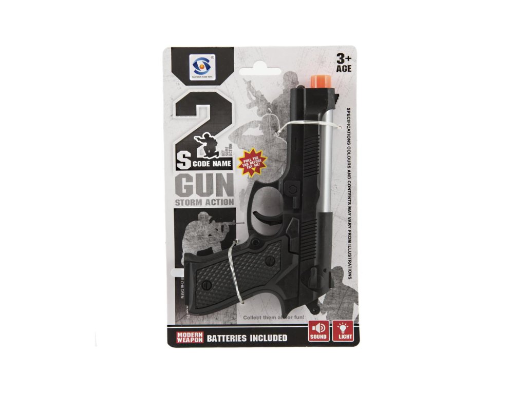 Pištoľ 17cm plast na batérie so svetlom so zvukom 3 farby na karte