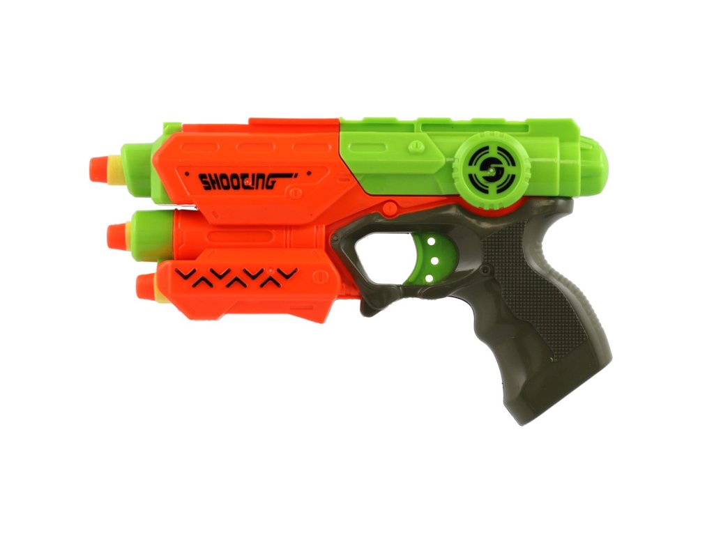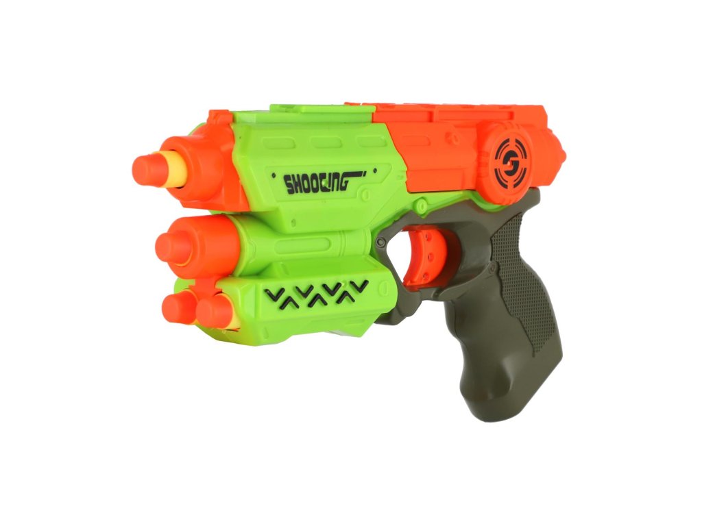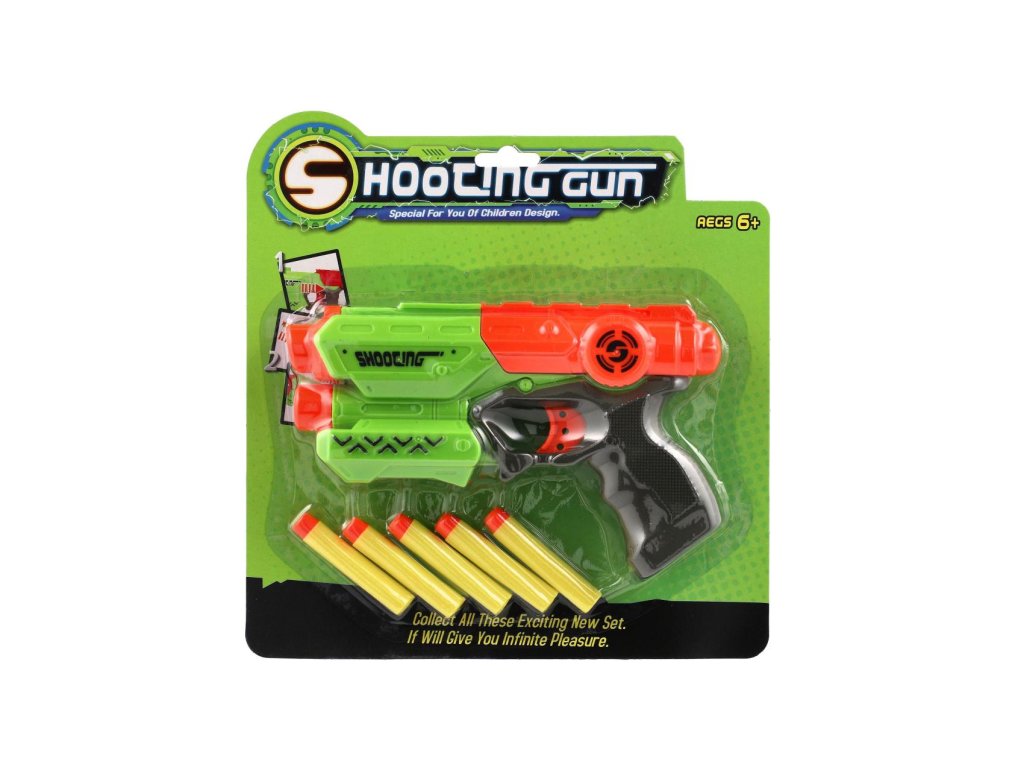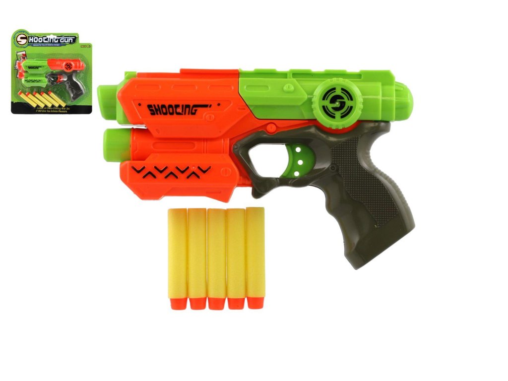 Pištoľ 21cm na penové náboje 5ks plast 2 farby na karte