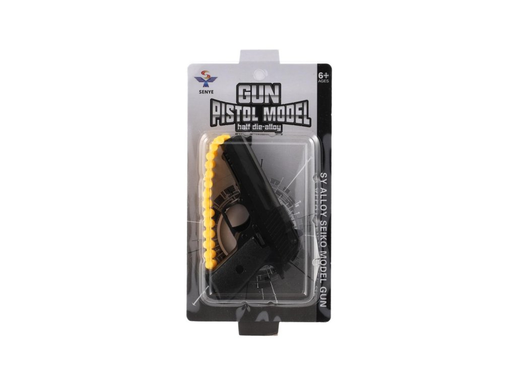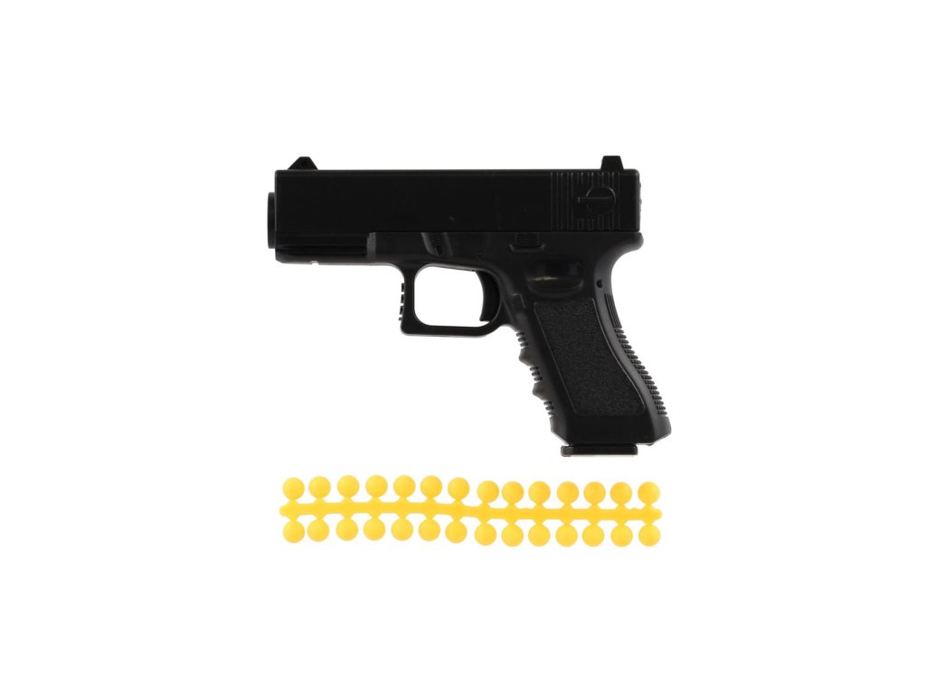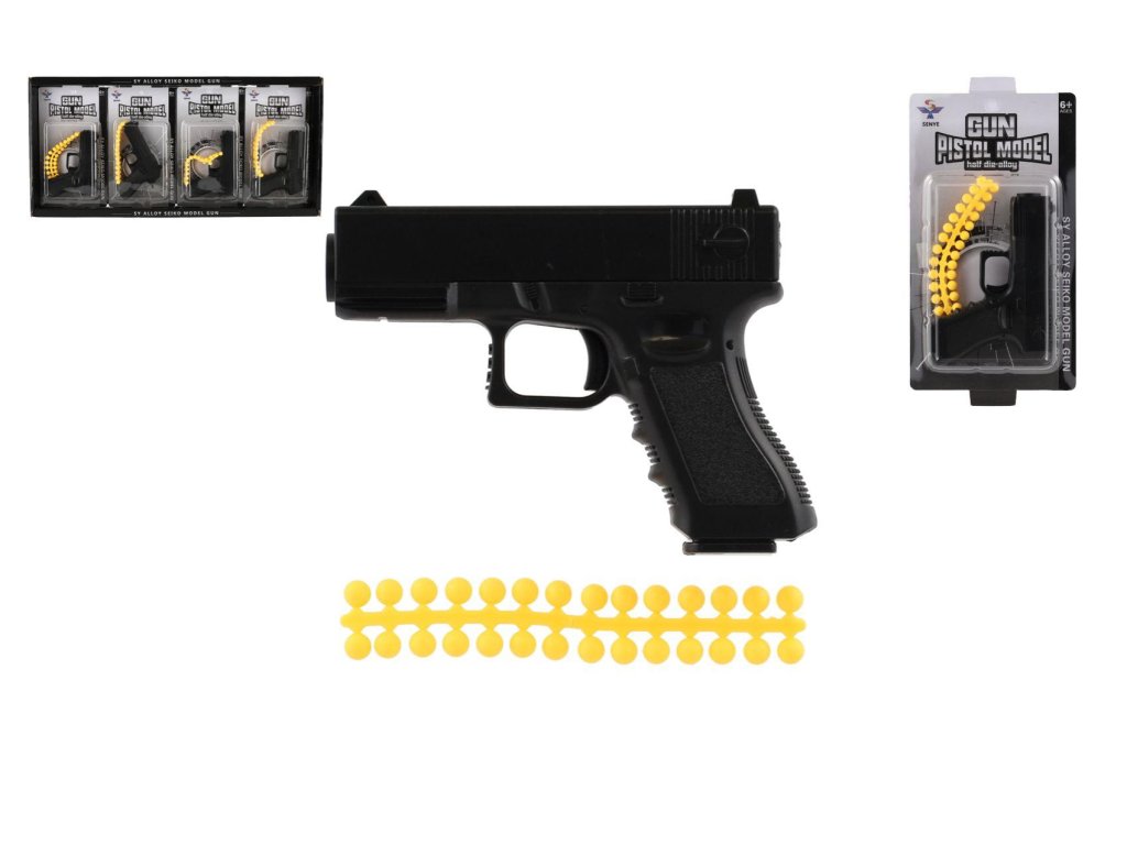 Pištoľ na mäkké guličky kov/plast 10cm + náboje 28ks