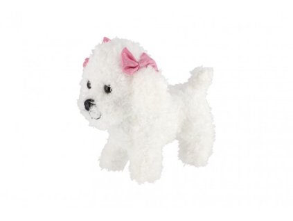 Pes/Psík stojaci s mašľami plyš 21cm biely v sáčku 0+