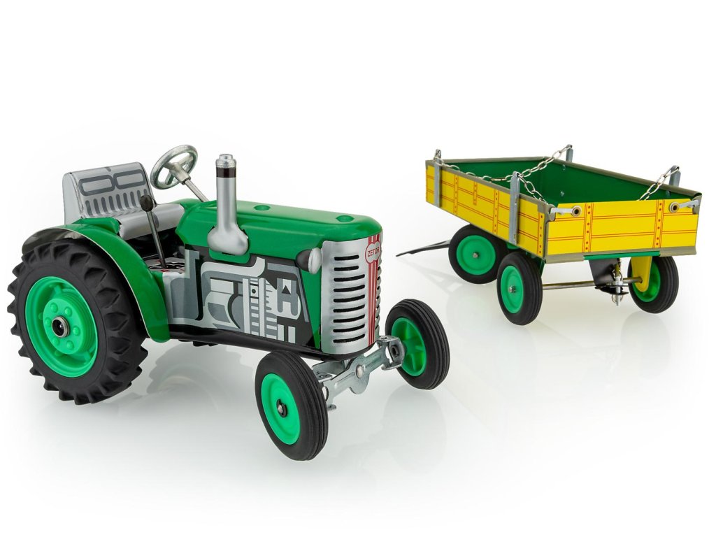 Traktor Zetor s prívesom zelený na kľúčik kov 28cm Kovap v krabičke