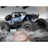 Odolný voči striekajúcej vode, silný akumulátor, pohon 4x4. Veľké mäkké kolesá. Mierka 1/10, Farba modrá