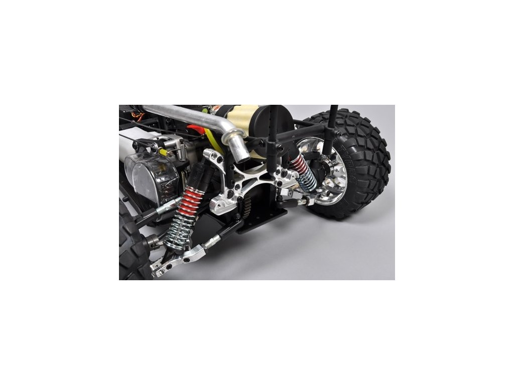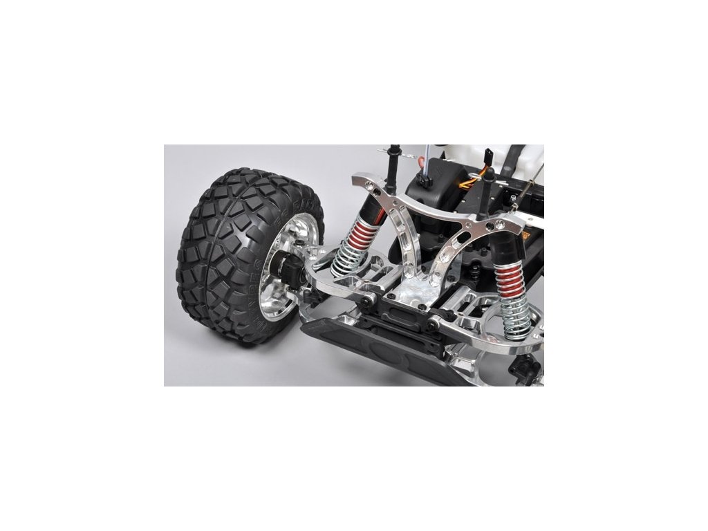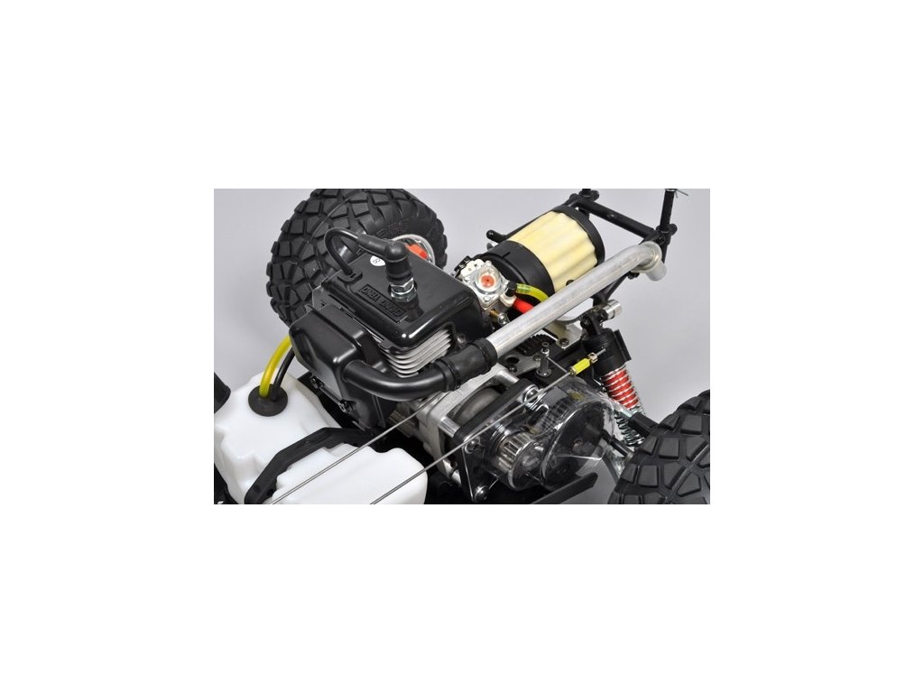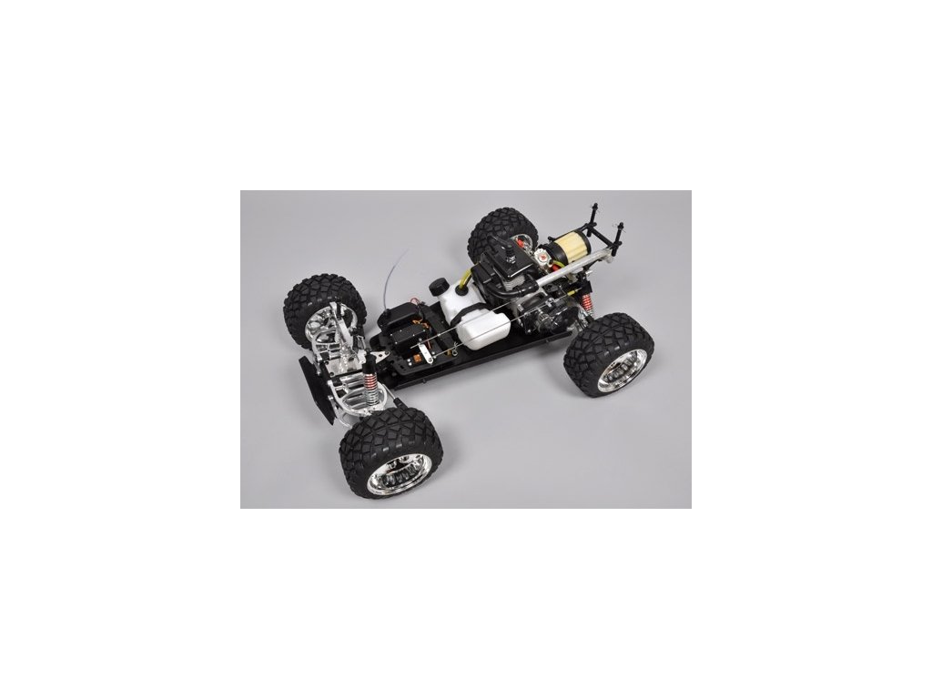 Podvozok je kompletne osadený guličkovými ložiskami. Tlmiče sú olejové s vinutými pružinami. O pohon sa stará výkonný dvojtaktný benzínový motor s obsahom 26ccm vybavený ťahovým štartérom.