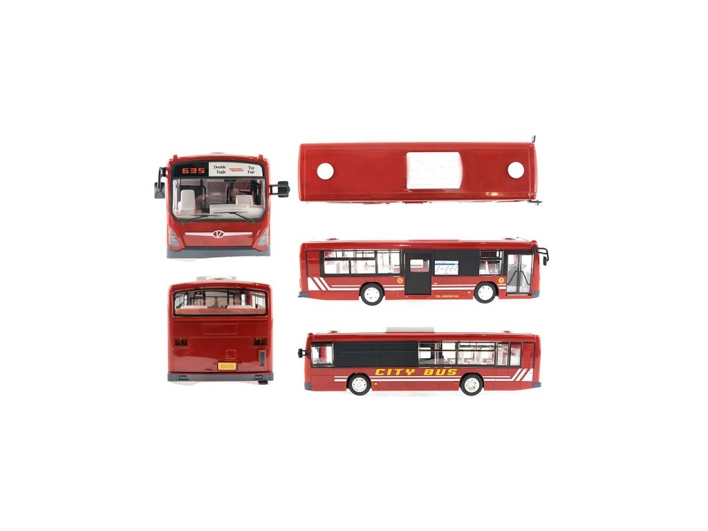 33cm dlhý autobus od Double Eeagle funguje na frekvencii 2,4 Ghz je poháňaný 4.8V akumulátorom, čo umožňuje až 20 minút zábavy. Do vysielača je potreba 2xAA batérie.