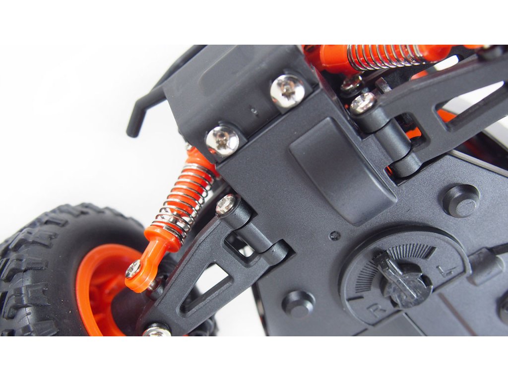 Maximální dosažitelná rychlost je asi 23 km / h. Ovládání přes 2,4 GHz vysílač. Model má pohon 4x4. Navíc je odolný proti stříkající vodě, a proto je vhodný pro venkovní použití do téměř jakéhokoliv terénu. RTR balení. Díky jednoduchému ovládání je vhodné pro začátečníky.