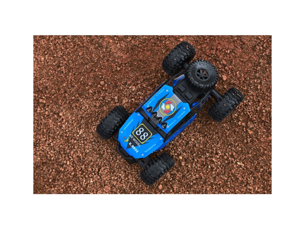 RC model MZ-88 v mierke 1/14 je terénny crawler určený na jazdu vonku. Vďaka mäkkým kolesám a robustnej konštrukcii zvládne nerovný povrch a ponúka stabilnú jazdu pri rýchlosti až 12 km/h.
