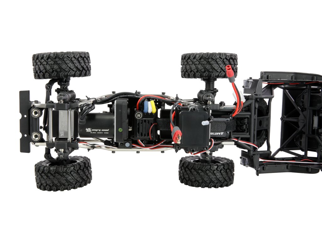 Hyper Go SC Scale Crawler v mierke 1:12 ponúka pôsobivý balíček pre náročné terénne dobrodružstvá. Model je poháňaný robustným bezkefovým striedavým motorom 3500KV as kombináciou 45A ESC poskytuje presné ovládanie a pôsobivé stúpavé schopnosti. Robustný pohon a prevody vyrobené z ocele a kovovej zliatiny zaisťujú maximálnu odolnosť a spoľahlivý prenos výkonu – aj pri veľkom zaťažení. Pre použitie za zhoršených svetelných podmienok je crawler vybavený prepínateľnými LED svetlami vpredu aj vzadu. Vysoko kvalitný maketový vzhľad, hliníková karoséria s ochrannou plastovou klietkou a plne funkčné olejové tlmiče podčiarkujú realistický vzhľad a terénne schopnosti. Vďaka konštrukcii RTR (Ready-to-Run) je vozidlo pripravené na jazdu ihneď po vybalení z krabice – vrátane diaľkového ovládania, batérie a nabíjacieho kábla. Ďalšie funkcie, ako je vodotesné puzdro prijímača, 20kg servo riadenia s kovovými prevodmi, mäkké gumové pneumatiky, systém 2,4 GHz a guličkové ložiská, robia z tohto crawleru ideálneho spoločníka do akéhokoľvek terénu.
