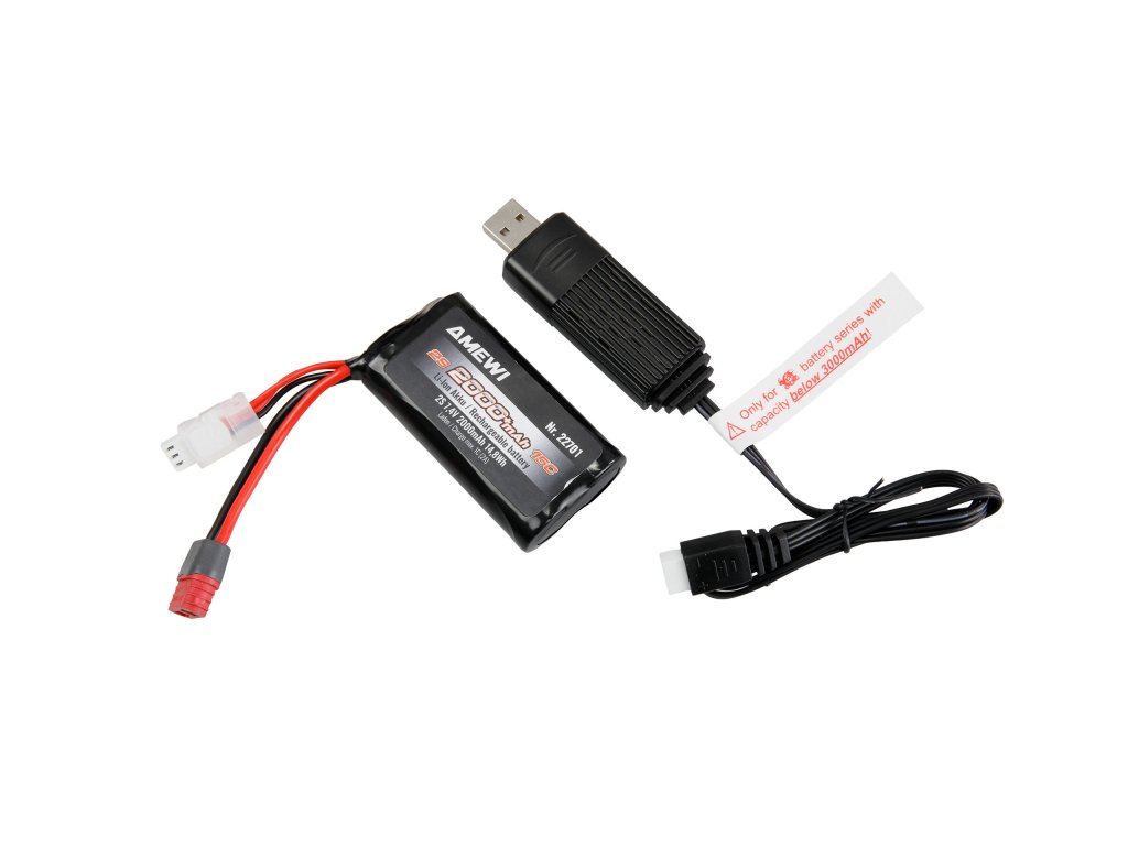 Batéria: Li-ion, 2S 7,4 V 2000 mAh valcové články, T-konektor, 70x36x16 mm, 97 g