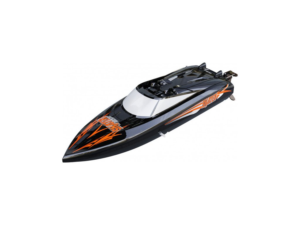 Rýchlostný čln Skater, frekvencia 2,4 GHz, veľkosť 34cm, rýchlosť 25 km/h. Čln má dvojitú palubu ako ochranu proti vniknutiu vody dovnútra.