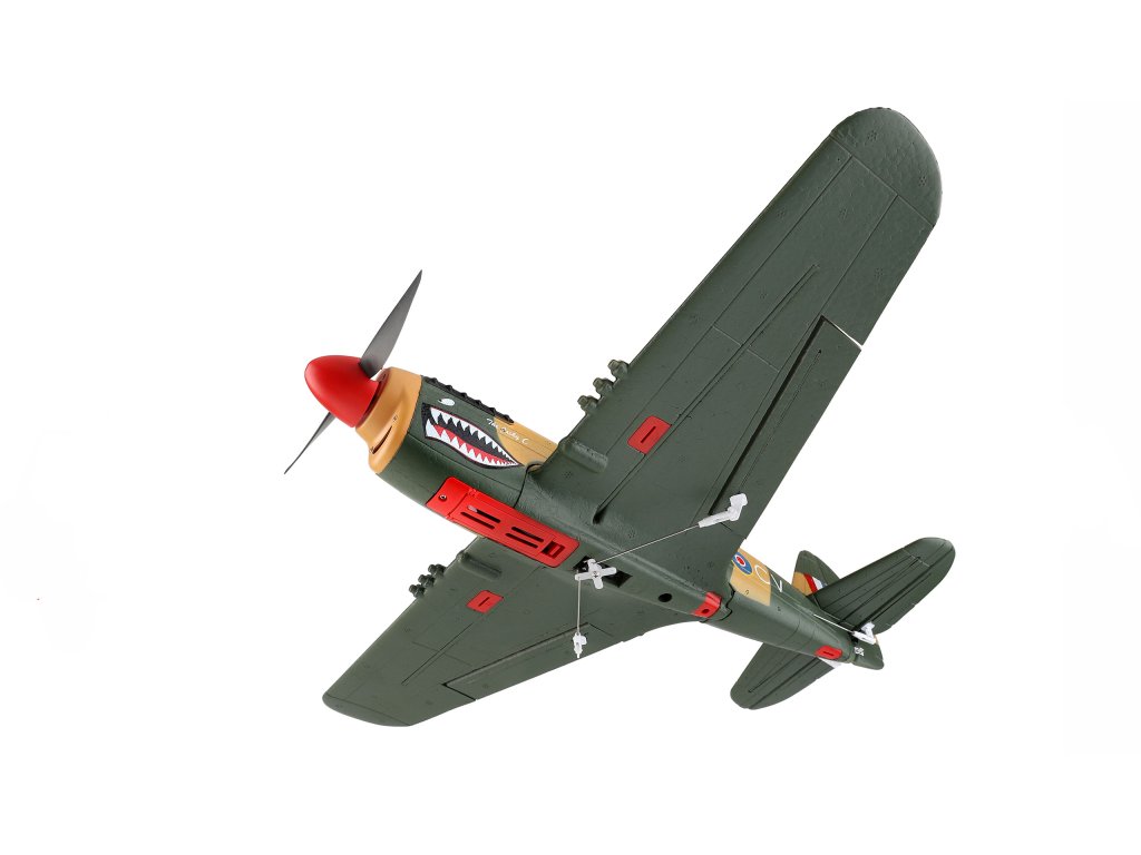 Amewi Edition Curtiss P-40 Warhawk je zmenšená replika ve věrném originálním lakování, která kombinuje perfektní letové vlastnosti (6G pro začátečníky, 3D pro pokročilé piloty) s nejmodernější technologií. Model je řízen přes všechny osy a je samo stabilizační v režimu 6G. Tato stabilizace zabraňuje pádu letadla a umožňuje pouze omezený úhel, takže smyčky, náklony nebo inverzní let nejsou v tomto nastavení možné. Po přepnutí do 3D režimu pomocí kvalitního 2,4GHz vysílače je však vhodný i pro dynamickou akrobacii. Všechny popsané standardní manévry jsou pak bez problémů možné. Pokud by se ve vzduchu něco pokazilo, lze stisknutím tlačítka přepnout zpět do režimu 6G a okamžitě se vrátí do stabilní letové polohy (funkce záchrany). Kromě těchto vlastností je model vybaven deskou přijímače, která umožňuje provoz např. Futaba nebo jiné 5V S-Bus přijímače a také DSM přijímače s 3V výstupem. Model tedy není závislý na dodávaném dálkovém ovladači, ale lze jej alternativně použít se stávajícím vysílačem.