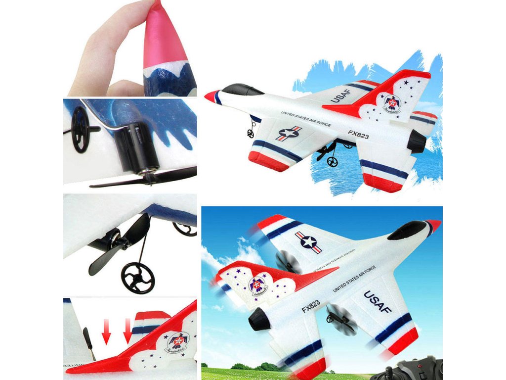 Lietadielko je vyrobené z odolného EPP materíálu vďaka ktorému sa stáva takmer nerozbitné. Model je riadený dvojkanálovým vysielačom 2.4 GHz a je veľmi ľahko ovládateľný. Motory lietadla sú poháňané LI-pol batériou 3.7 V 300mAh a nabíjanie akumulátorov prebieha pomocou priloženého USB káblu