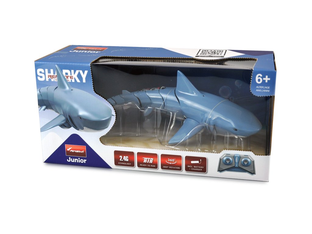 ŽRALOK, KTERÝ VÁS NESEŽERE A NEMUSÍTE HO ANI KRMIT, JEN OBČAS NABÍT, TAKOVÝ JE RC SHARKY. ZÁBAVNÁ A TUZE HEZKÁ RYBIČKA PRO HRY V AKVÁRIU POPŘÍPADĚ VE VANĚ ČI BAZÉNU.
